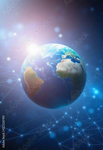 Planet earth in rotation with internet network connection on a blue backdrop, Diffused lighting, with white tones