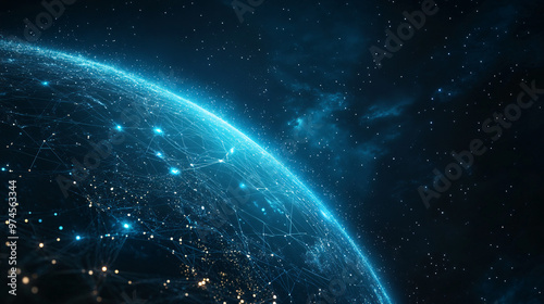 Planet earth is aglow with interconnected lines of communication over a starry background