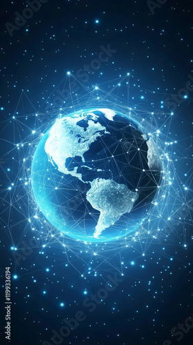 Planet earth rotating in space with network and nodes, showing internet network and communication technology, data exchange and global business