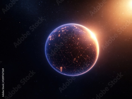 Planet Earth with Digital Network in Space