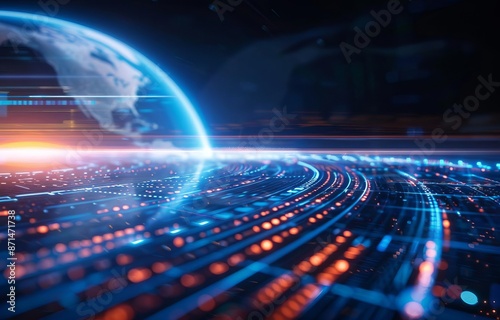 Planetary value analysis, holographic market trends, futuristic corporate setting,