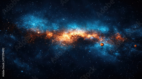Planets near nebula in deep space; starscape background for sci-fi projects