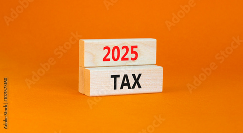 Planning 2025 tax new year symbol. Concept words 2025 Tax on beautiful wooden blocks. Beautiful orange background. Business 2025 tax new year concept. Copy space.