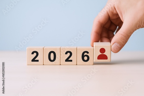 Planning for the Future: Wooden Blocks Displaying 2026 with Human Icon, Representing Goals and Aspirations