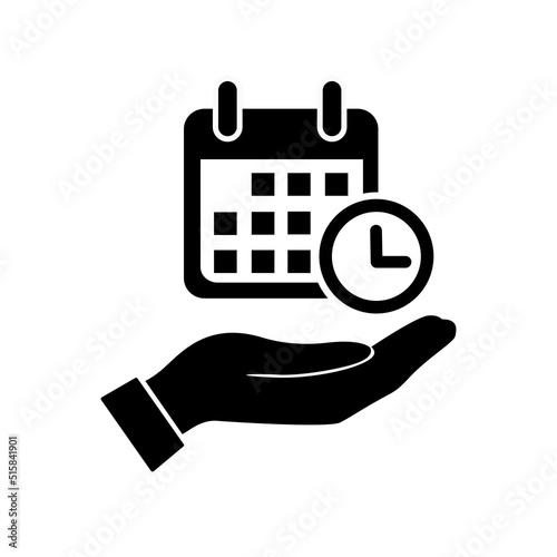 Planning, time management, hand holding calendar icon.