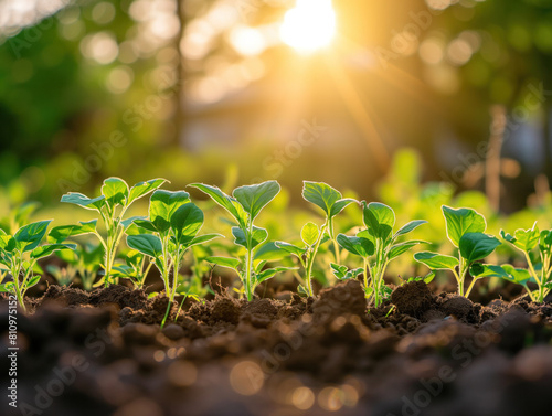 Plant cultivation through agriculture involves sowing and tending to plants in a sunlit garden to promote their growth and development.
