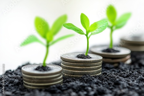 Plant growth on coin on white background business start idea and business building to success with generative ai