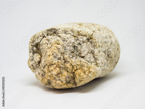 Plant Leaf fossil embedded in stone, real ancient petrified shell, isolated on white