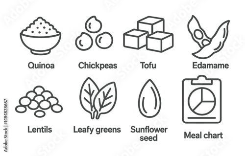 Plant-based nutrition icons set – outline, vegan, healthy food symbols