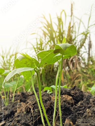 Plants of bean vegetables starting to grow