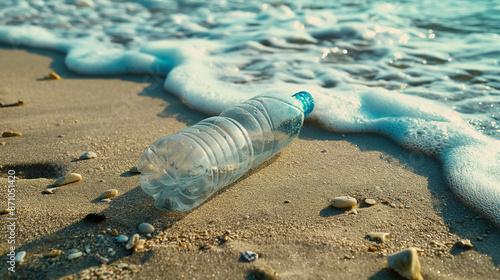 Plastic bottle on the beach, on the seashore, pollution, garbage,marine litter,environment