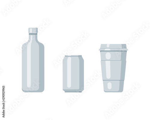 Plastic bottle set design flat oil and beverage. Set containers of different capacities large small tare.