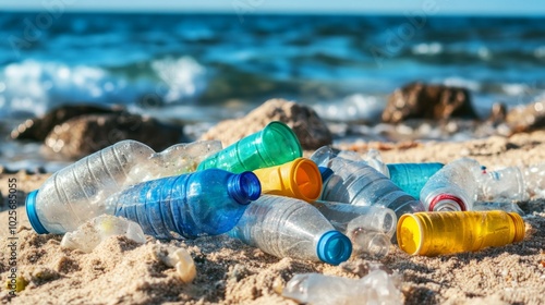 Plastic Bottles Littering a Sandy Beach