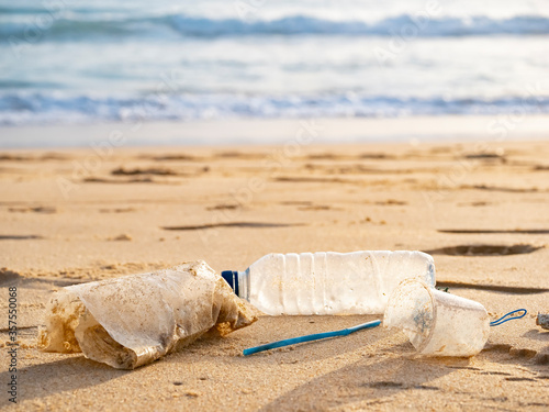 plastic garbage on sand sea beach