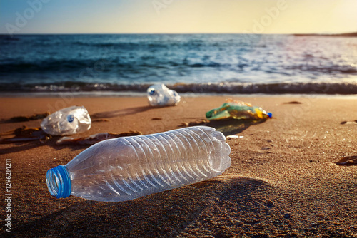 Plastic pollution environment. Royalty high-quality free best stock of gabage, plastic, waste trash from the sea to make dirty beach. Waste that polluted the ocean environment, ecological problem