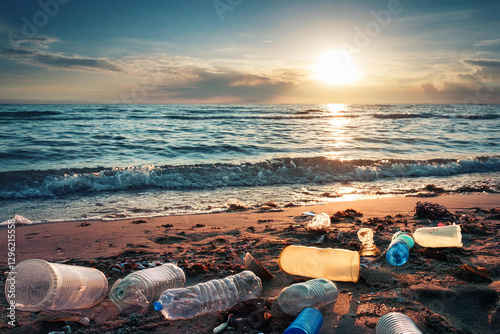 Plastic pollution environment. Royalty high-quality free best stock of gabage, plastic, waste trash from the sea to make dirty beach. Waste that polluted the ocean environment, ecological problem