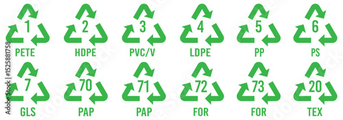 Plastic recycles icons collection. Recycle plastic vector set in triangular shape. Collection of recycling codes.