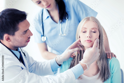 plastic surgeon or doctor with patient