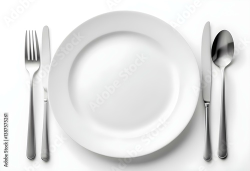 Plate and cutlery. Isolated on white background