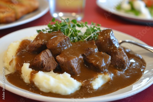 Plate of Beef or Pork with Mashed Potatoes in Rich Meatloaf