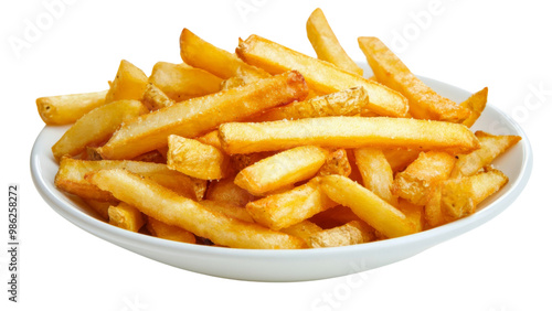 Plate of crispy French fries isolated on transparent background, PNG file, golden and delicious