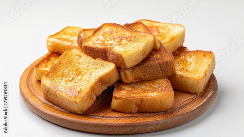 Plate of French toast on a white surface