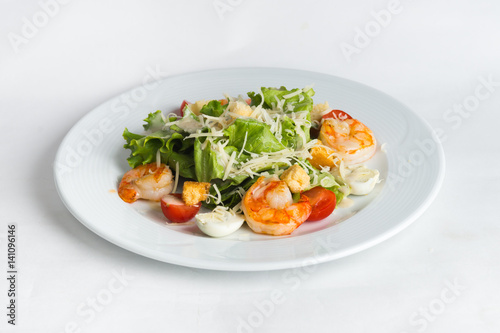 Plate of salad on white background