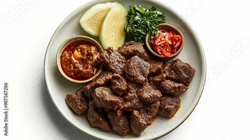 Plate of Sauteed Beef with Chili, Cucumber, and Cilantro Garnish