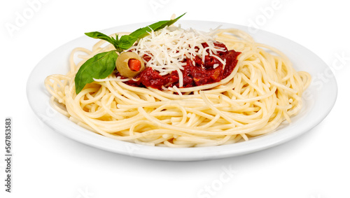 plate of spaghetti and tomato sauce