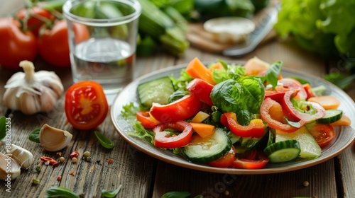 Plate of Vegetable Salad on Wooden Table, Healthy Food, Nutrition, Raw Eating, Organic, Vegan Dish, Generated AI