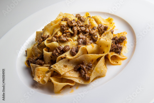 Plate with pappardelle with wild boar ragout sauce