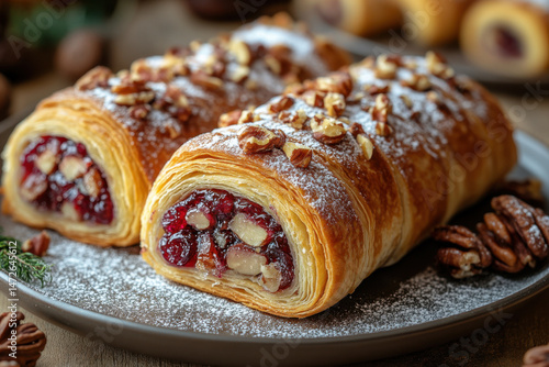 Plate with pastry and nuts.