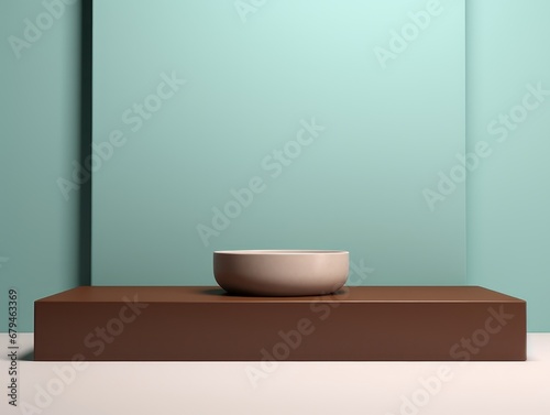 platform Podium Display Mockup with a bowl. Minimal mockup for product showcase banner. Modern promotion. Geometric shape background with empty space.