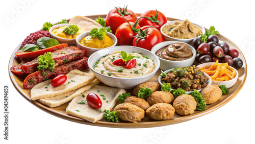 platter of assorted mediterranean meze isolated on Transparent background.