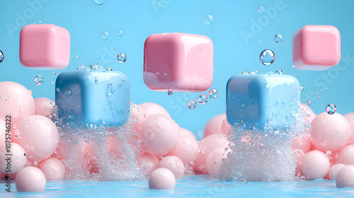 Playful and Colorful Ice Cube Background with Bubbles and Foam