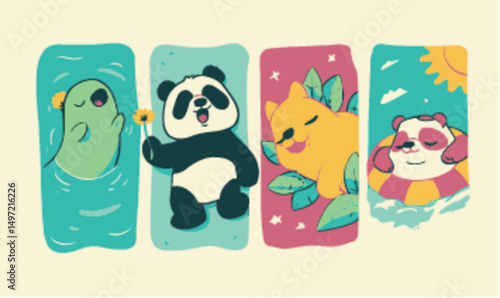 Playful Cartoon Animals in Vibrant Colors with a Nature Theme