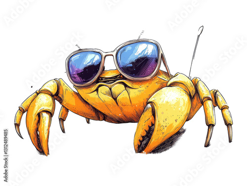 Playful Cartoon Crab Wearing Sunglasses in Vibrant Colors, Perfect for 2D Illustrations and High-Resolution Artwork
