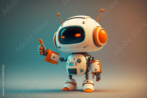 Playful cute and happy toy robot android 3d rendering. Ai generated