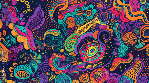 Playful Doodle Art Pattern in Vibrant Colors. Expressive and Bright Design with Vivid Colors