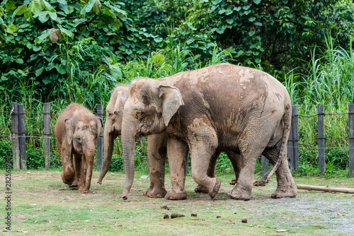 Playful elephants at the zoo in Borneo, Malaysia