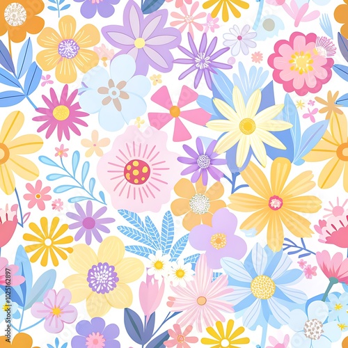 Playful floral pattern with vibrant colors for spring and summer textile designs