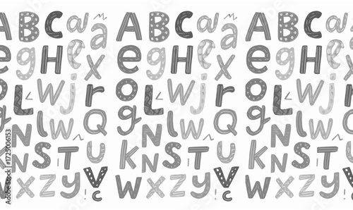 Playful Kids Letter Art, Creative Kids Typography, childlike alphabet, playful letters, educational illustration, cheerful patterns, squiggly lines, polka dots, striped letters,