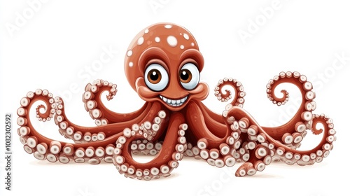 Playful octopus character underwater scene illustration colorful environment front view whimsical concept