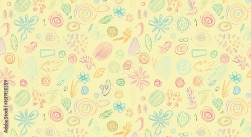 Playful Pastel HandDrawn Seamless Pattern with Abstract Floral Doodles and Organic Shapes on L