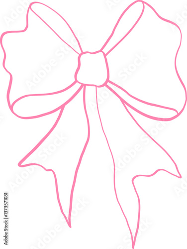 Playful Pink Ribbon Bow Outline Hand Drawn