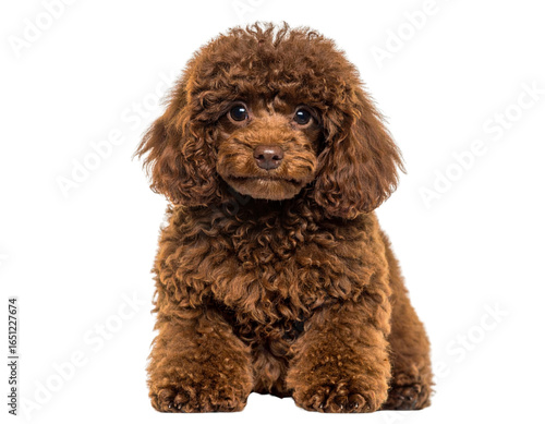 Playful Poodle Puppy Sitting with Tilted Head, Transparent PNG