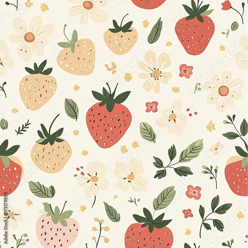 Playful Strawberry and Flower Pattern for Seasonal Design