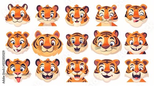 Playful Tigers Heads Emoticons Mascot Cartoon Characters