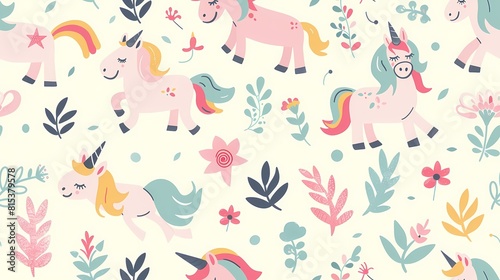 Playful unicorns and whimsical florals in pastel colors
