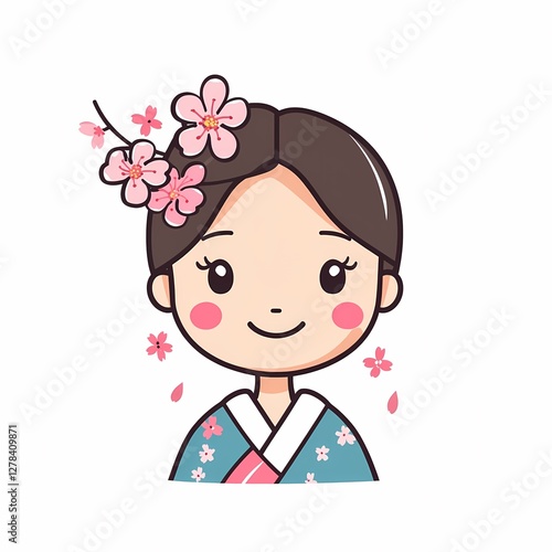 Playful vector graphic of a woman with cherry blossoms, ideal for modern illustrations.
